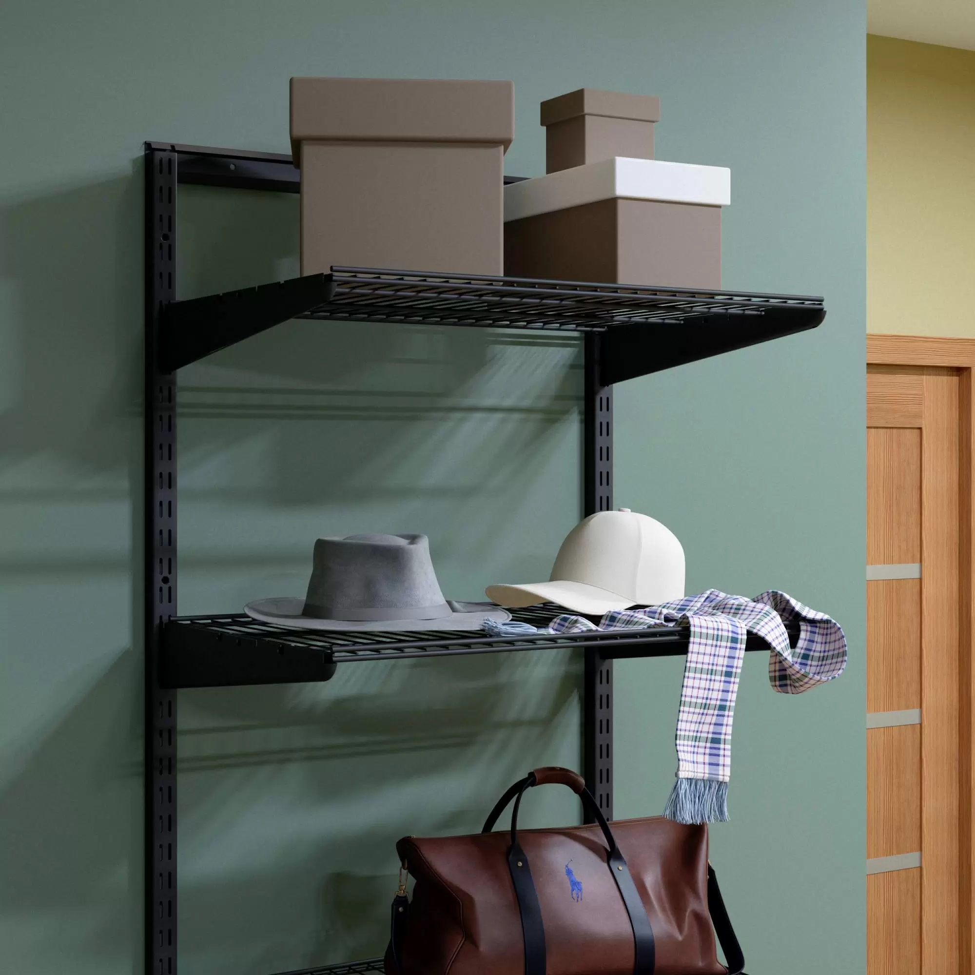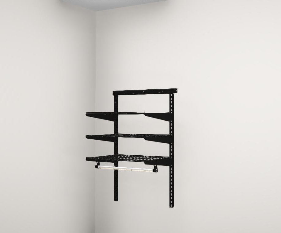 Базовый комплект гардеробной системы GS - это готовое решение для квартиры, дачи, гаража, обеспечивающее удобное хранение вещей. Система собирается в 6 разных конфигурациях, что позволяет подстраивать ее под размеры помещения и ориентироваться на личные пожелания по расположению отдельных элементов. В комплект входят несущие рельсы и навесные направляющие, полки, штанги, аксессуары, крепежные элементы. Можно докупить множество дополнительных компонентов для гардеробной системы.