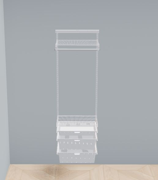 В комплект входят несущие рельсы и навесные направляющие, полки, штанги, аксессуары, крепежные элементы. Можно докупить множество дополнительных компонентов для гардеробной системы.