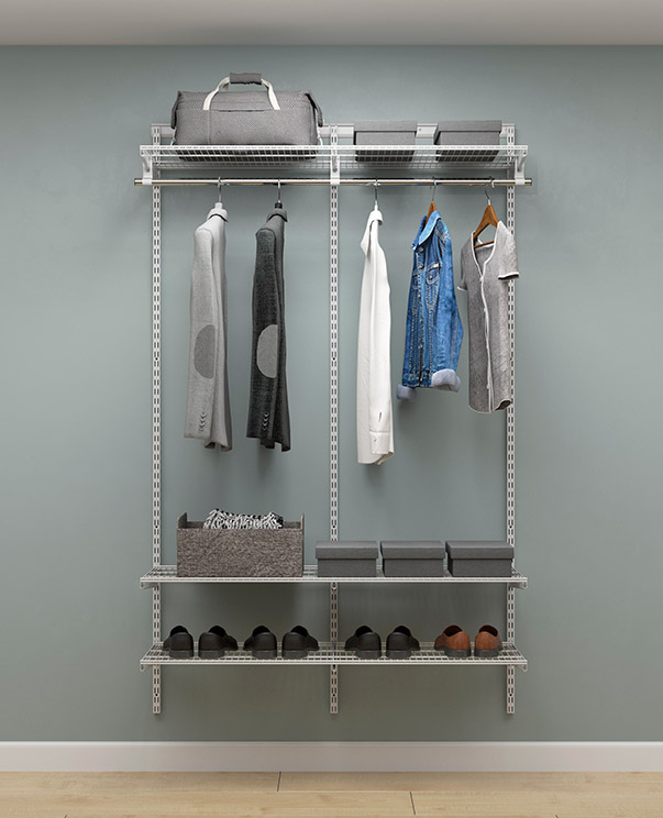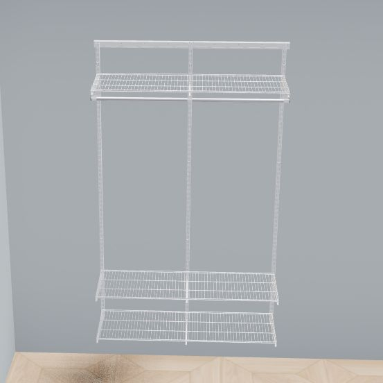 В комплект входят несущие рельсы и навесные направляющие, полки, штанги, аксессуары, крепежные элементы. Можно докупить множество дополнительных компонентов для гардеробной системы.