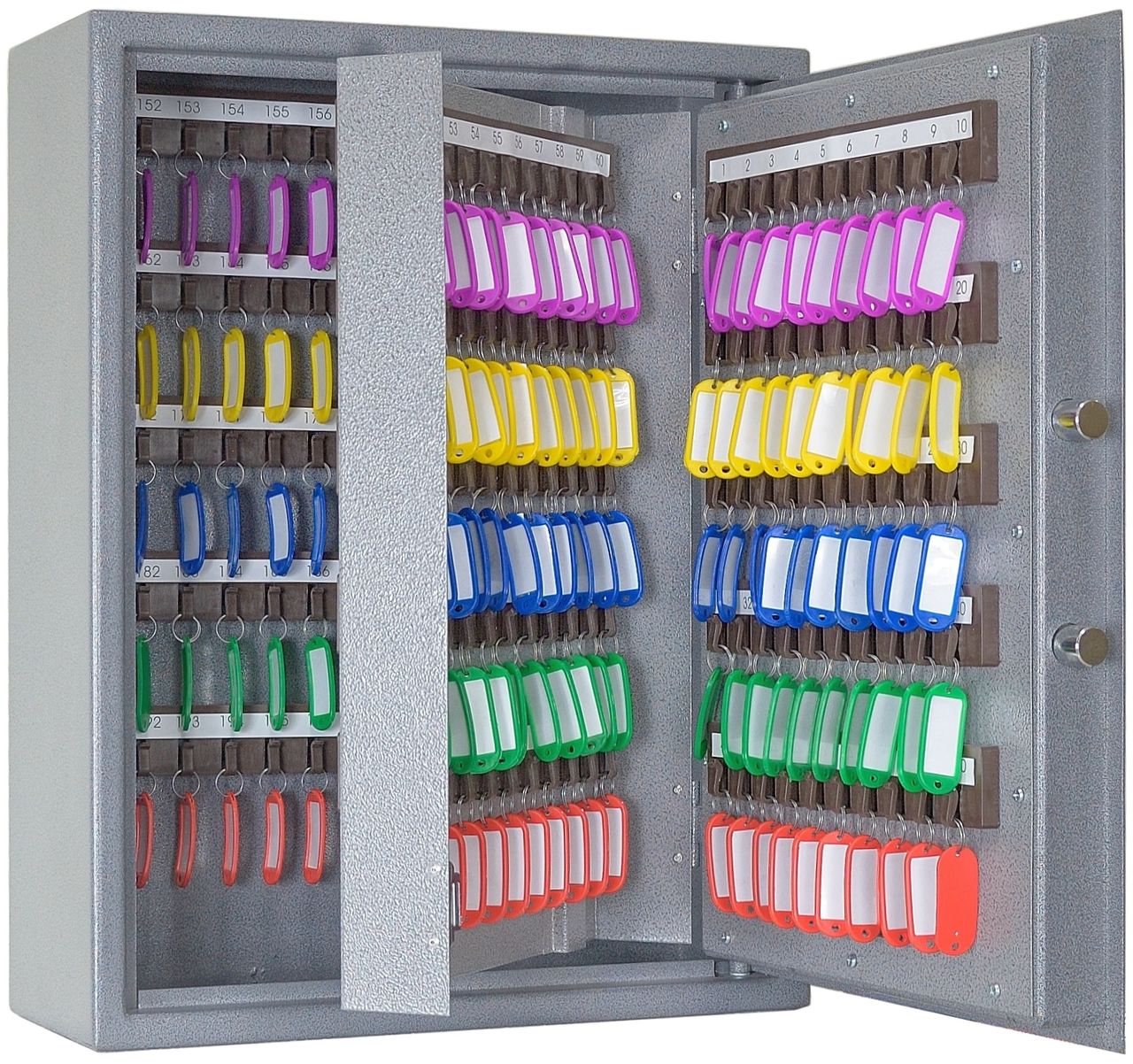 Ключница КЛЭ-200 предназначена для хранения 200 комплектов ключей. На задней стенке корпуса расположены отверстия для крепления. Ключница комплектуется 20 планками под навеску ключей.
