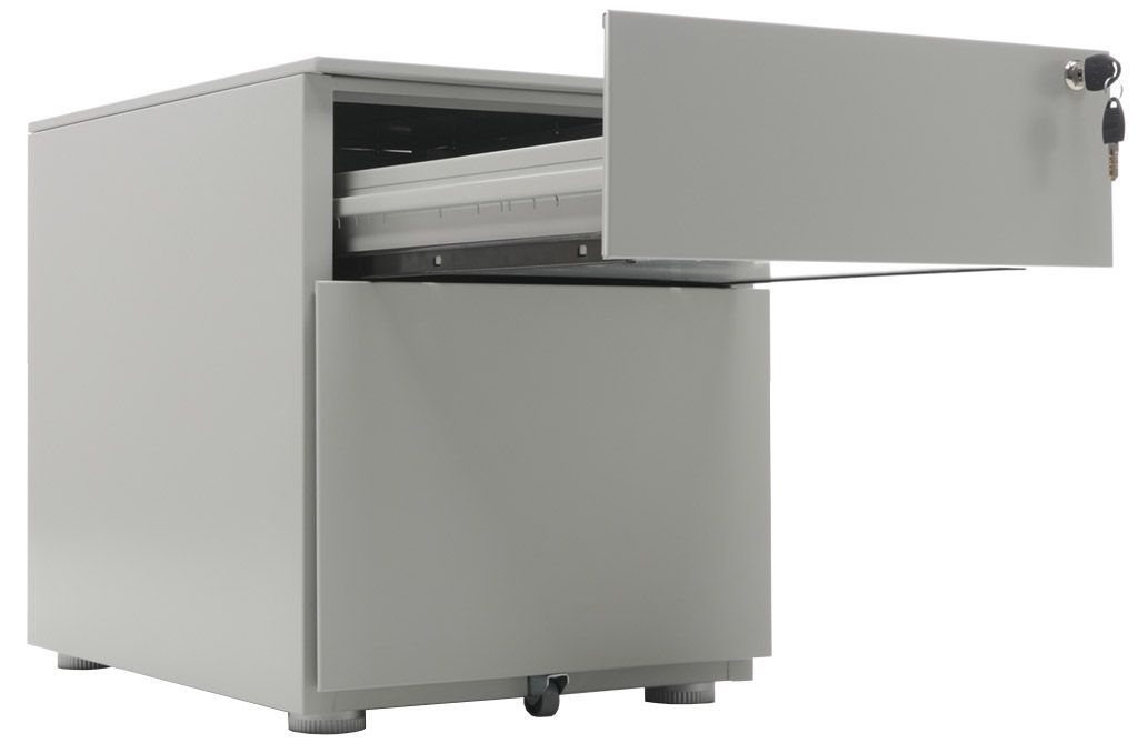 - Опции: пластиковые лотки и металлический ящик для канцелярских принадлежностей и других предметов. Возможность комбинирования цветов: корпус + фасады ящиков и крышка (конструкция тумбы металл+металл). Или отделка фасадов ящиков и крыши тумбы ламинированной плитой ЛДСП (конструкция тумбы металл+ЛДСП)