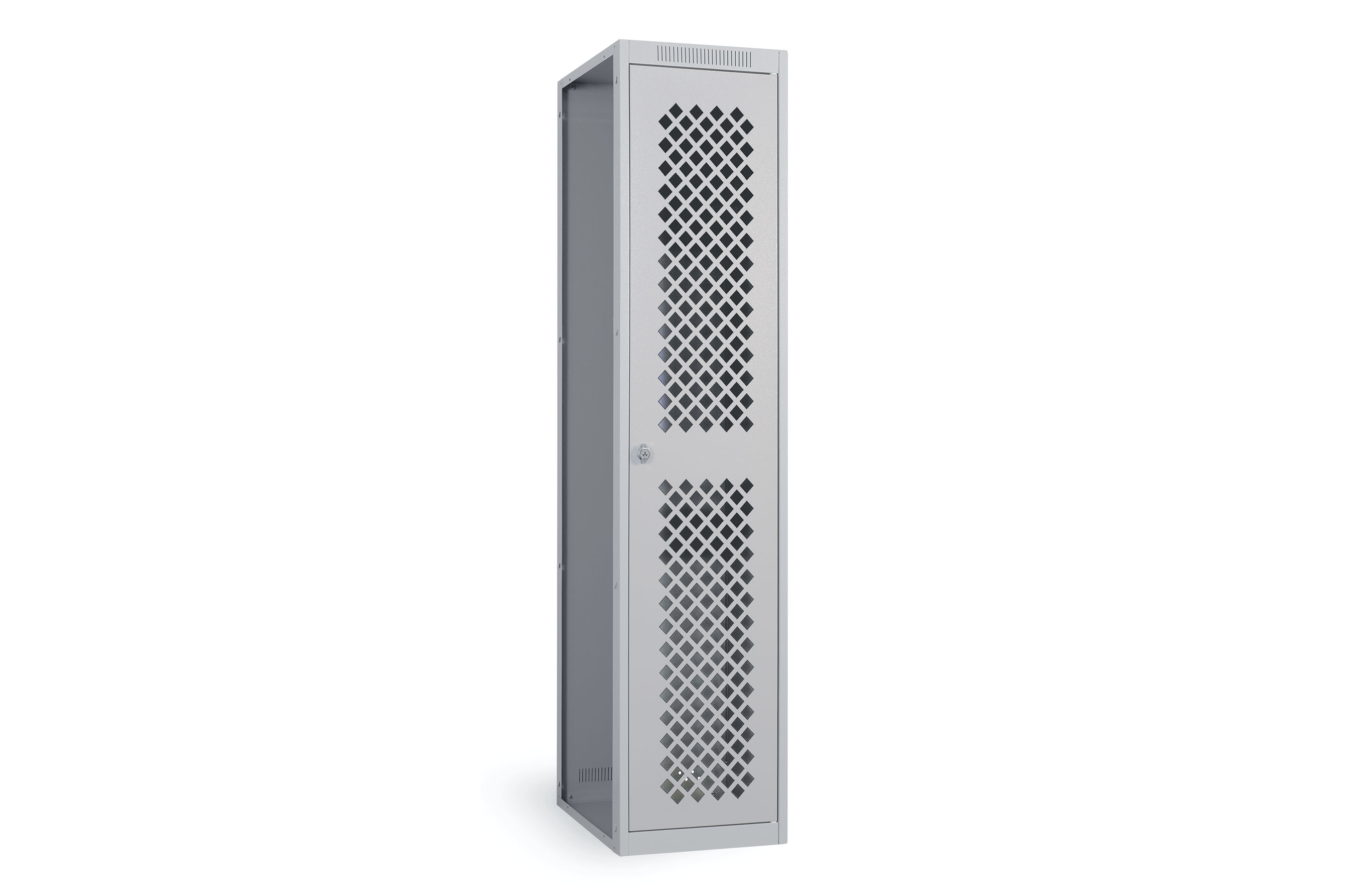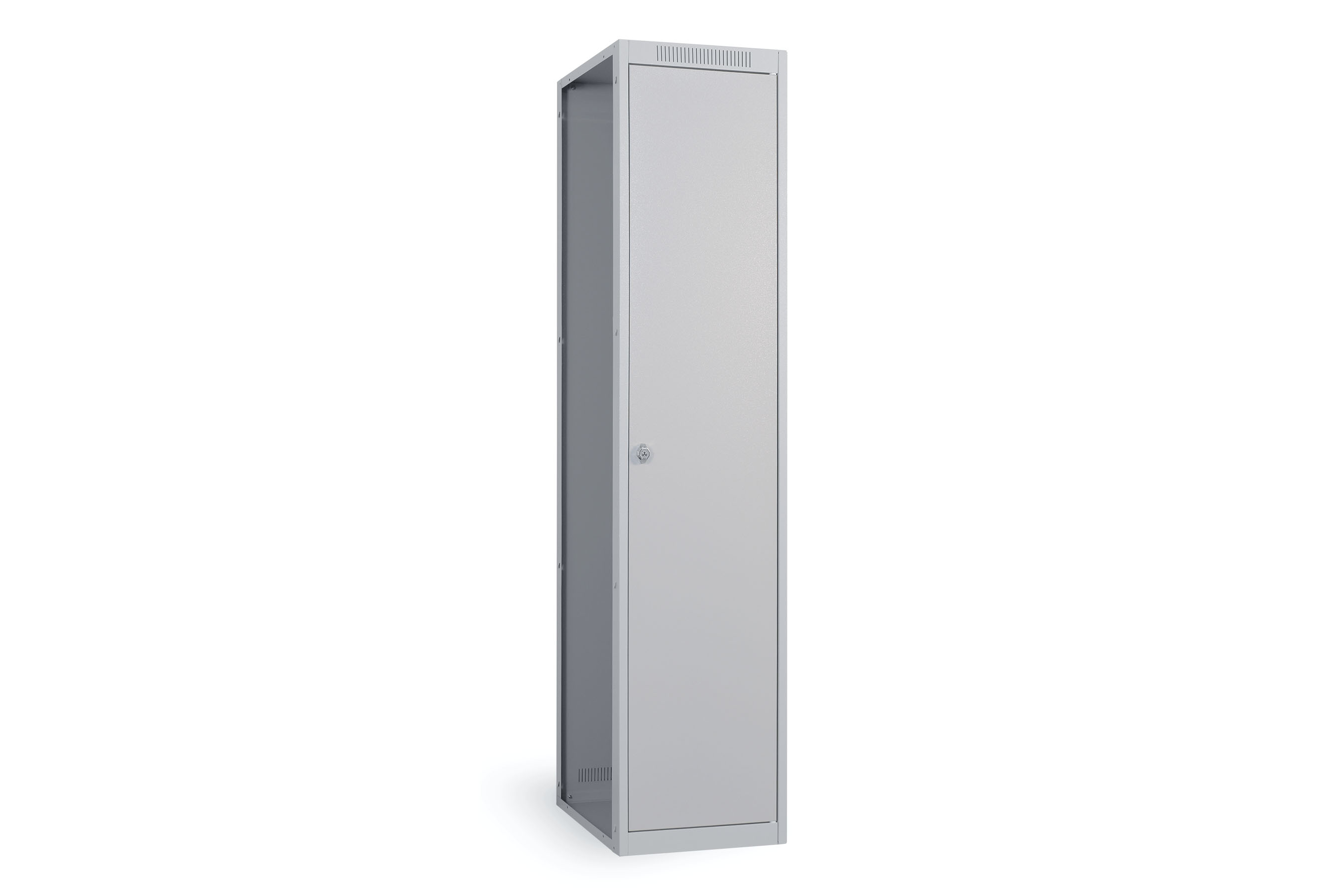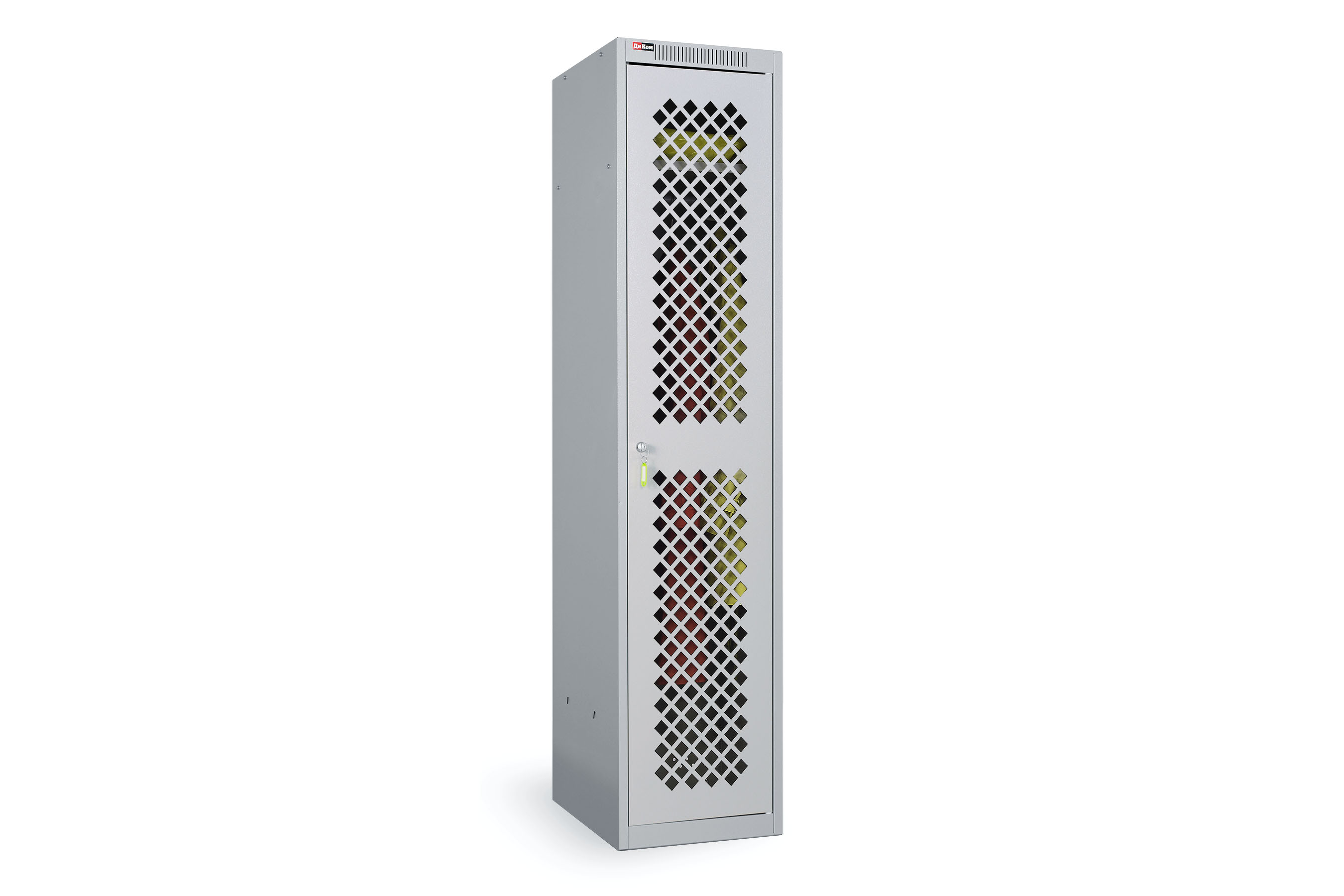 Шкаф предназначен для одного человека, имеет одну ячейку. Ячейка оснащена полкой под головной убор и перекладиной с двумя крючками. По желанию можно установить нижнюю полку под обувь.