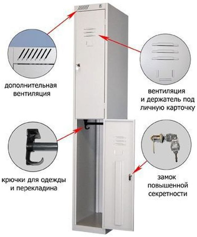 Модульный шкаф для одежды ШРС-12-300 состоит из одной секции, двух ячеек. Комплектуется двумя замками, двумя перекладинами, четырьмя крючками.
