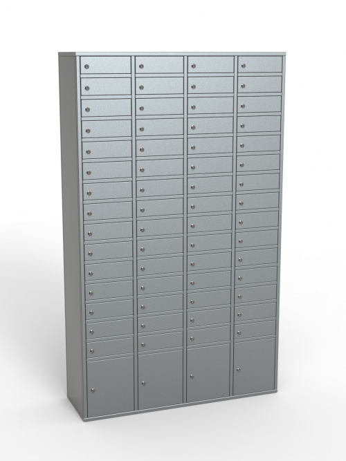 - Шкаф на 64 «глухих» ячейки под формат А4 с кодовым замком(3-хзначная комбинация);