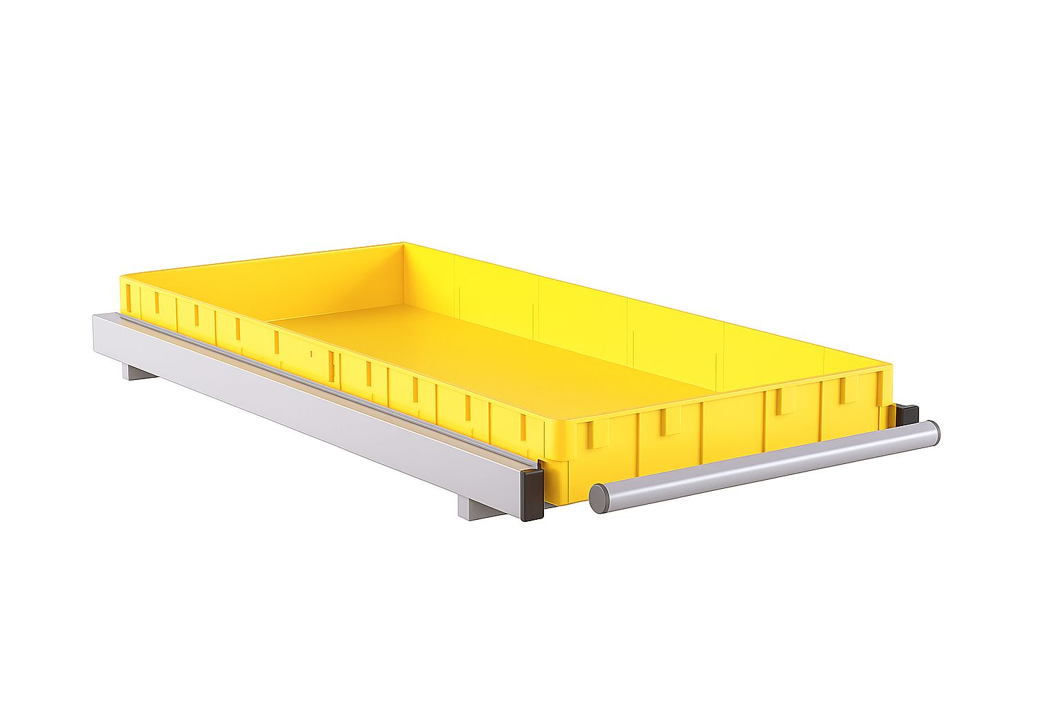 Модуль встраиваемый в стандартный евростеллаж. Распределенная нагрузка до 25 кг. Размещение до 8 наименований товара изолированно друг от друга. Глубина (выдвинутая) - 1910 мм
