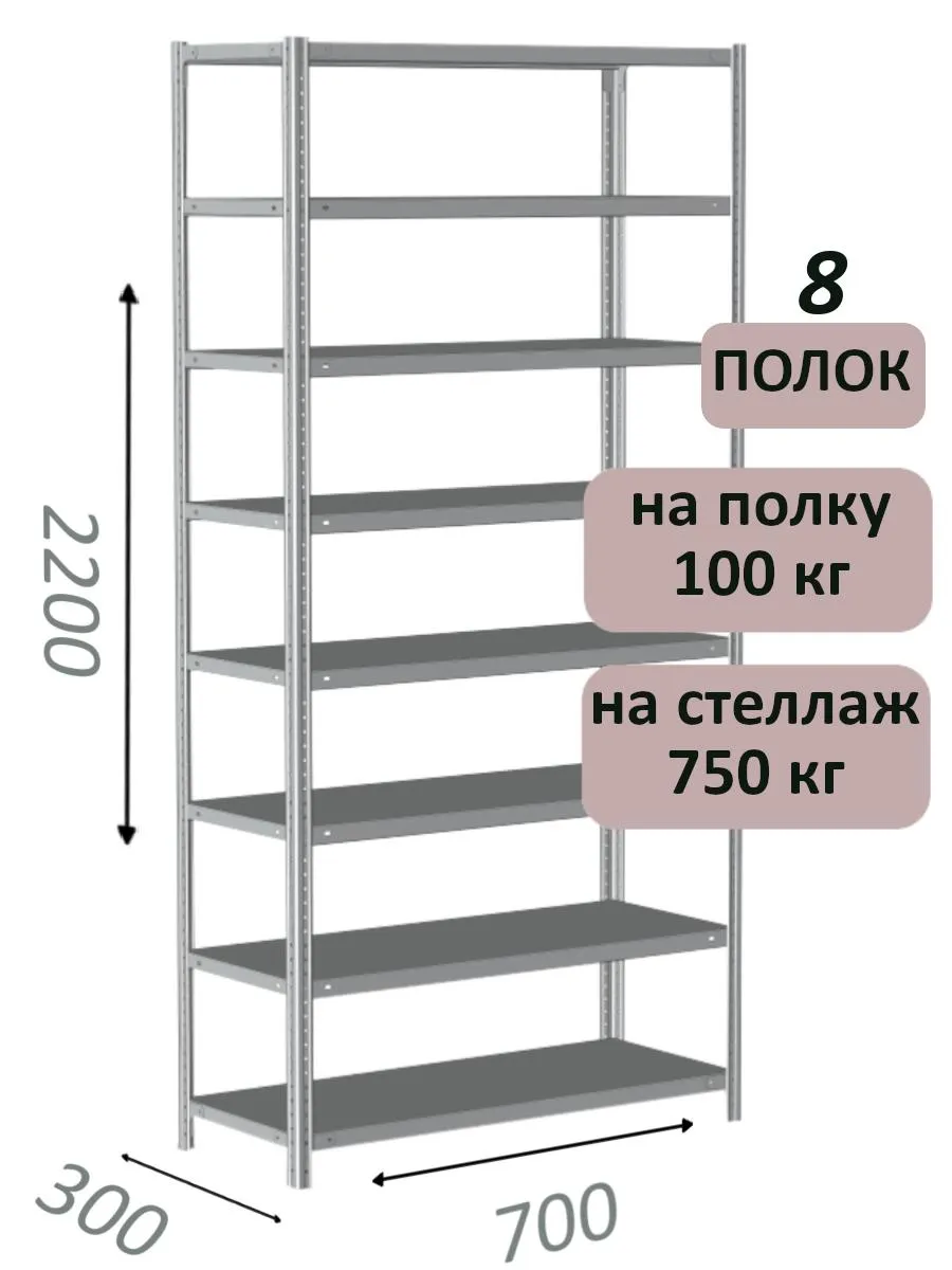 Чтобы уточнить цену и заказать доставку Стеллаж металлический полочный МС 2200х700х300, 8 полок, 100 кг на полку, светло-серый в , звоните по телефону или закажите обратный звонок.