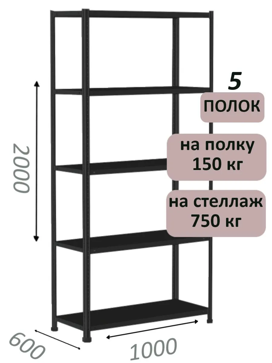 Стеллаж МС 2000х1000х600, 5 полок, чёрный