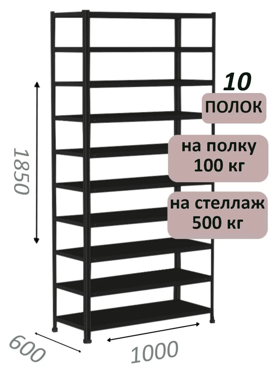 Чтобы уточнить цену и заказать доставку Стеллаж MS Standart 185х100х60, 10 полок, чёрный в , звоните по телефону или закажите обратный звонок.