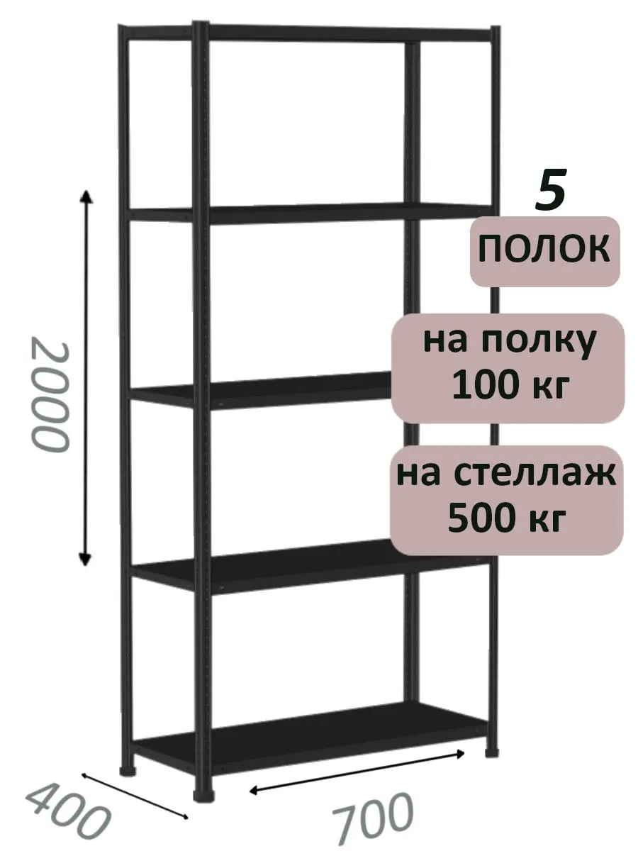 Стеллаж MS Standart 200х70х40, 5 полок, чёрный