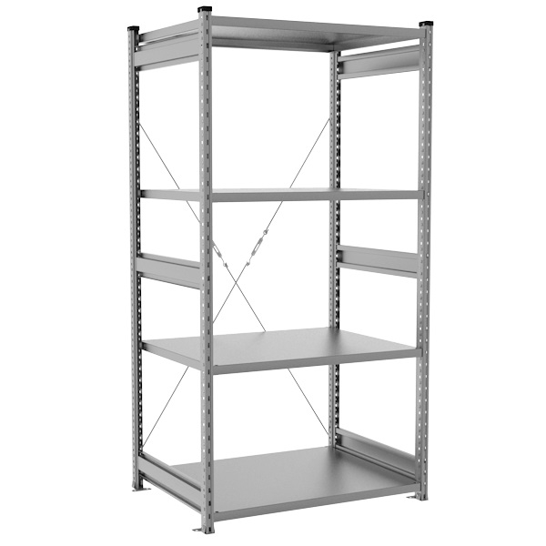 Допустимое минимальное количество полок на секцию стеллажа — не менее четырех.