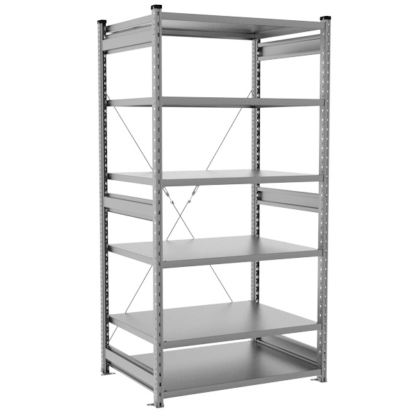 Допустимое минимальное количество полок на секцию стеллажа — не менее четырех.