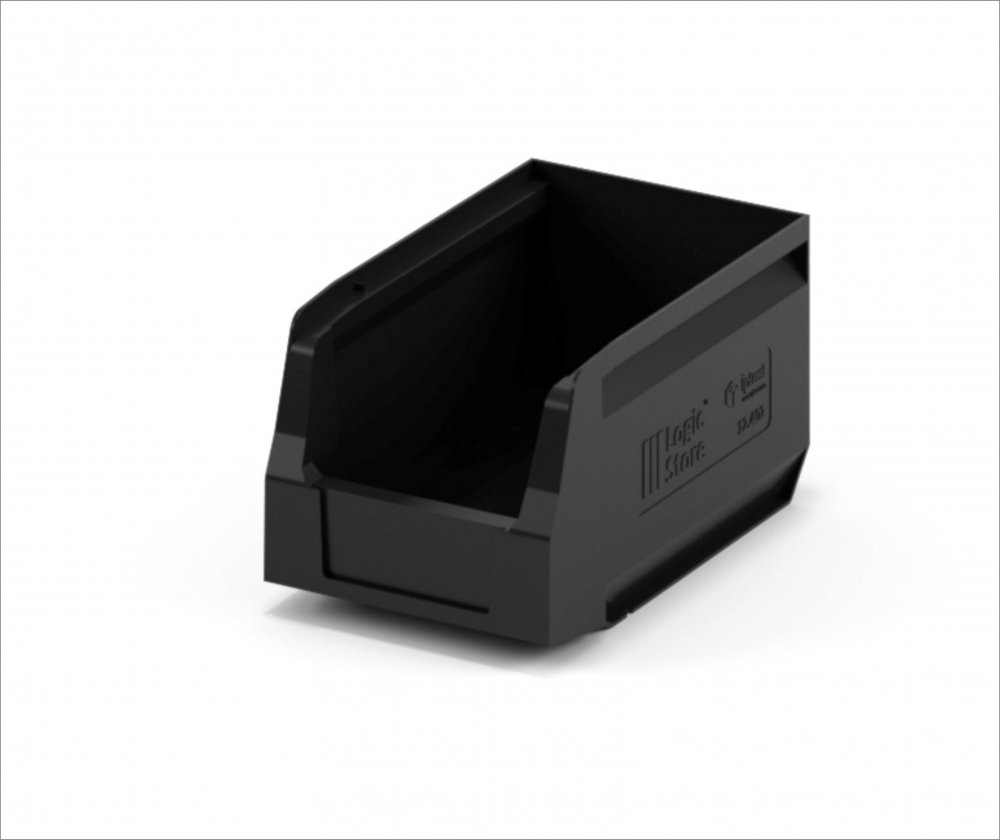 За счет убранных внутрь ребер жесткости контейнера достигается экономия пространства на 15%. Шероховатая поверхность дна предотвращает скольжение на стеллажах и лентах транспортеров, а специальный профиль придает прочность и жесткость боковым стенкам контейнера.