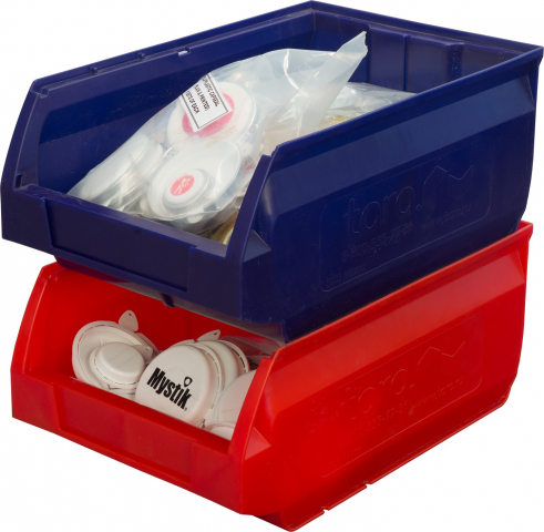 - Ящики штабелируются друг с другом в сеты, могут размещаться на стеллажах, в том числе крепиться на навесных стеллажах за счет специального выступа на задней стенке.