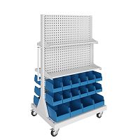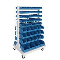 Стеллаж с направляющими мобильный односторонний V4-12 ячеек (160К), грузоподъемность до 300кг. Предназначен для размещения контейнеров V-4 в отдельных ячейках на продольных направляющих. Подходит для эксплуатации в автомастерских, в строительных магазинах, на складах, где необходимо складирование мелкоштучных изделий и инструментов. При использовании вместе с колесами и ручкой, данный стеллаж становится мобильным, что значительно расширяет его функциональные возможности для перемещения хранимых предметов по территории предприятия, склада, цеха. Конструкция ящиков модели V4 обеспечивает быстрый и легкий доступ. Ящики открытого типа позволяют быстро находить нужные позиции, это возможно благодаря хорошему визуальному обзору содержимого. Конструкция стеллажа позволяет одним движением руки извлекать нужный ящик для его наполнения или опустошения, и так же легко устанавливать его на место. Стеллаж поставляется в разобранном виде и состоит из:. металлического каркаса стеллажа с направляющими одностороннего V4-12 ячеек - 1 шт.; ящиков пластиковых модель V-4 - 12 шт.; комплекта колес резина, сталь диаметром 160мм.; ручки. Температурный режим эксплуатации от +20 до +70С.