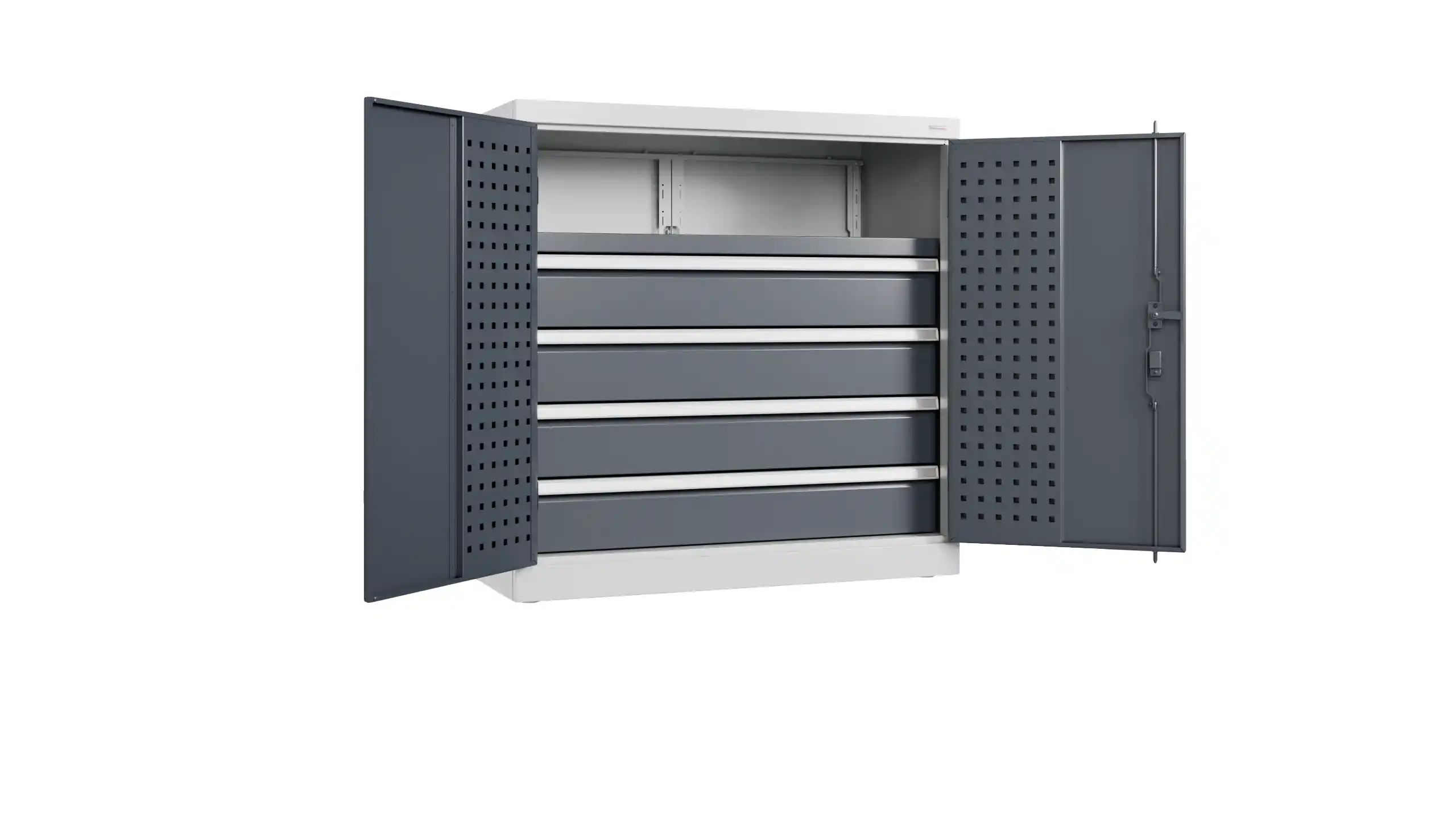 Шкаф антресольный инструментальный Fabrik тяжёлой серии предназначен для хранения оснастки, приспособлений и инструмента в мастерских, цехах и других производственных зонах.