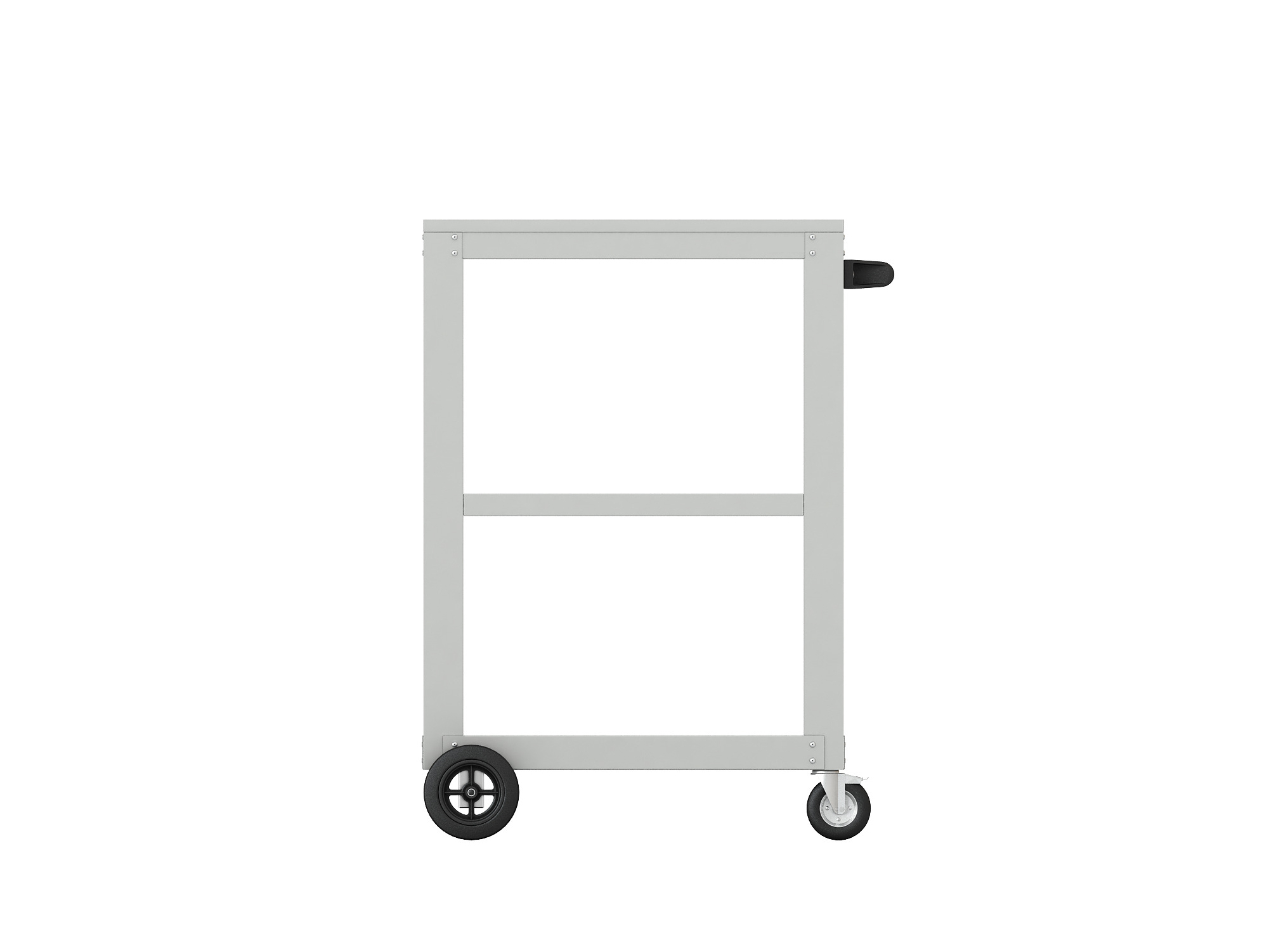 - Ручка для передвижения тумбы из стальной трубы d=30 мм с пластиковым покрытием и элементами крепления из полиамида, крепится к каркасу тележки винтами с одной стороны