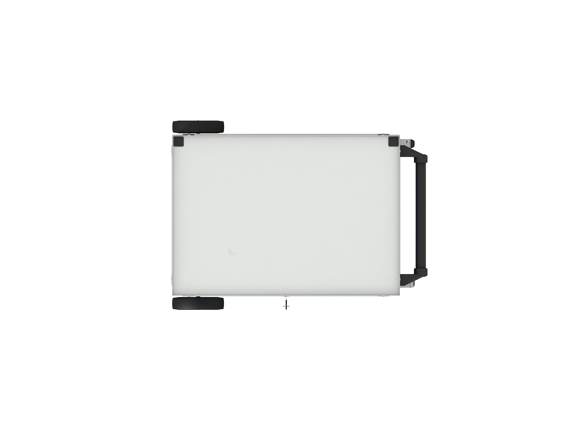 - Колеса: 2 поворотных d=100 мм со стояночным тормозом и 2 неповоротных колеса d=150 мм, выступающих за плоскость тележки, обеспечивают высокую устойчивость