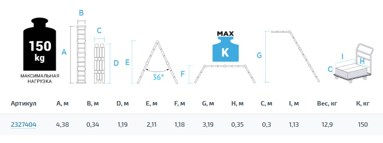 Улучшенная лестница «4 в 1»: приставная, Г-образная, стремянка, подмости. Для краткосрочных работ с повышенной нагрузкой.