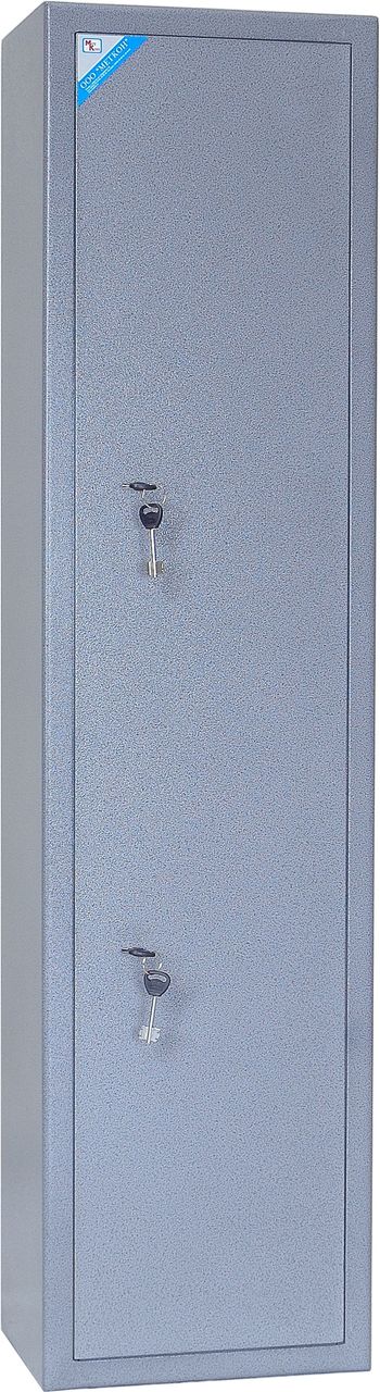 Сейф односекционный, на 2 ствола оснащен съемными полками и отделением под патроны. Максимальная высота устанавливаемого оружия — 1380 мм. Ложементы — металлические держатели с резиновыми роликами. Два замка ЗАО «Про-Сам» г. Рязань или аналогичные замки другого производителя.