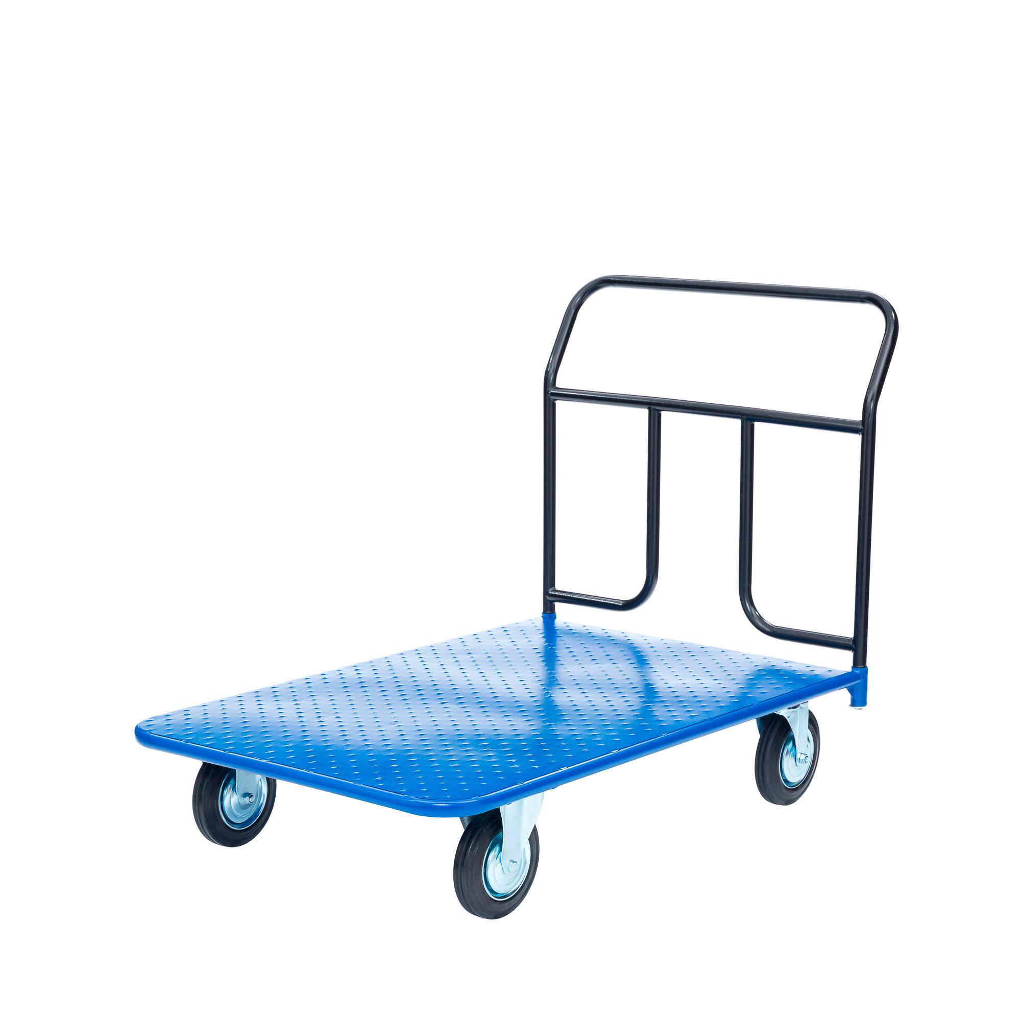 Платформенная 4-х колесная тележка КП-500 (800х1200) используется для перемещения различных грузов в складских помещениях. Ручка крепится к платформе болтами, для компактного хранения можно снять, высота ручки 750мм. Платформа имеет уникальную рельефную, полимерную, противоскользящую поверхность. Цвет синий, шагрень. Для легкого перемещения тележка КП-500 комплектуется 2 поворотными и 2 неповоротными колесами, изготовленными из высококачественной литой резины.