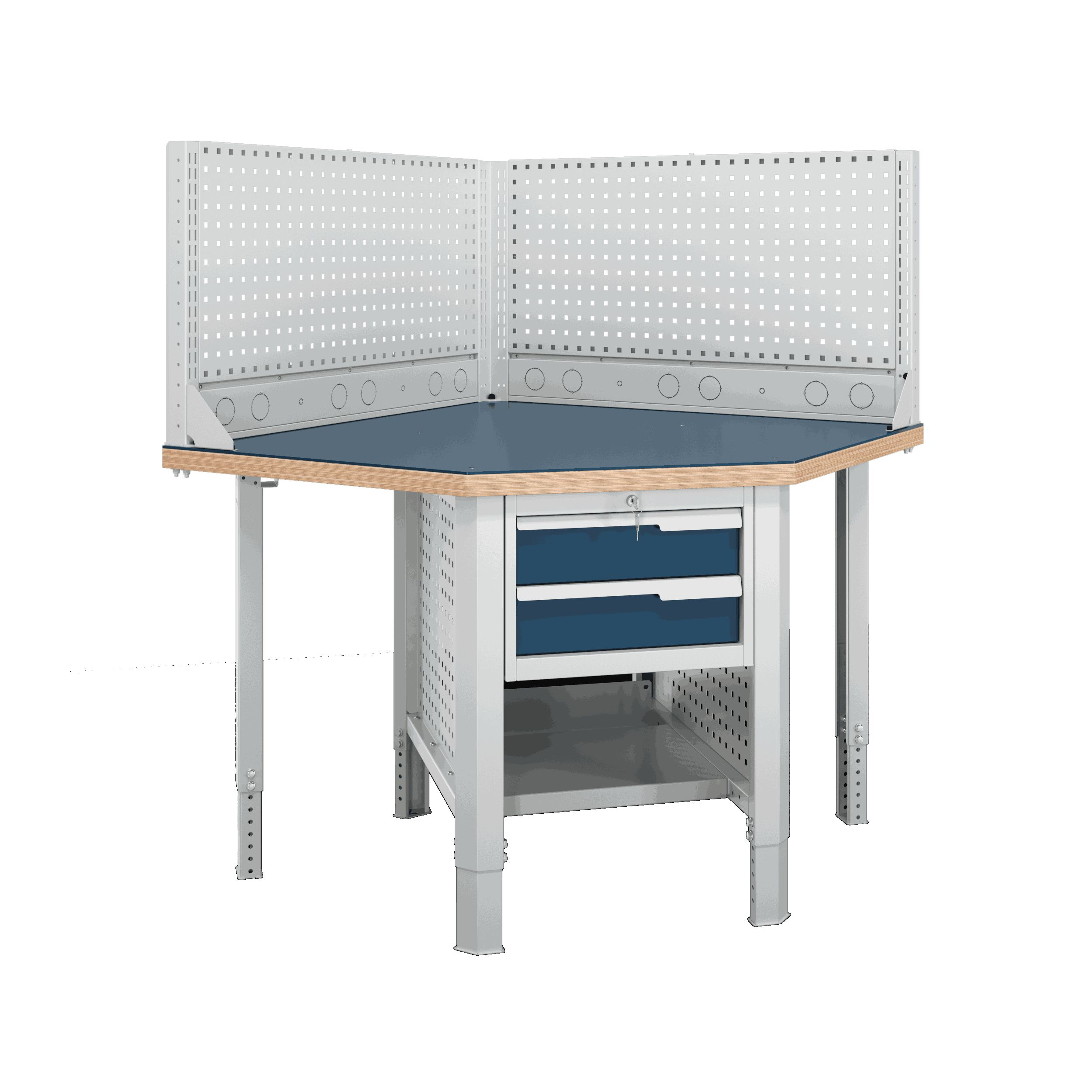 Блок стыковки углового верстака серии Constructor U5 разработан для обеспечения максимальной гибкости и надежности, учитывая конструктивные характеристики рабочего помещения.