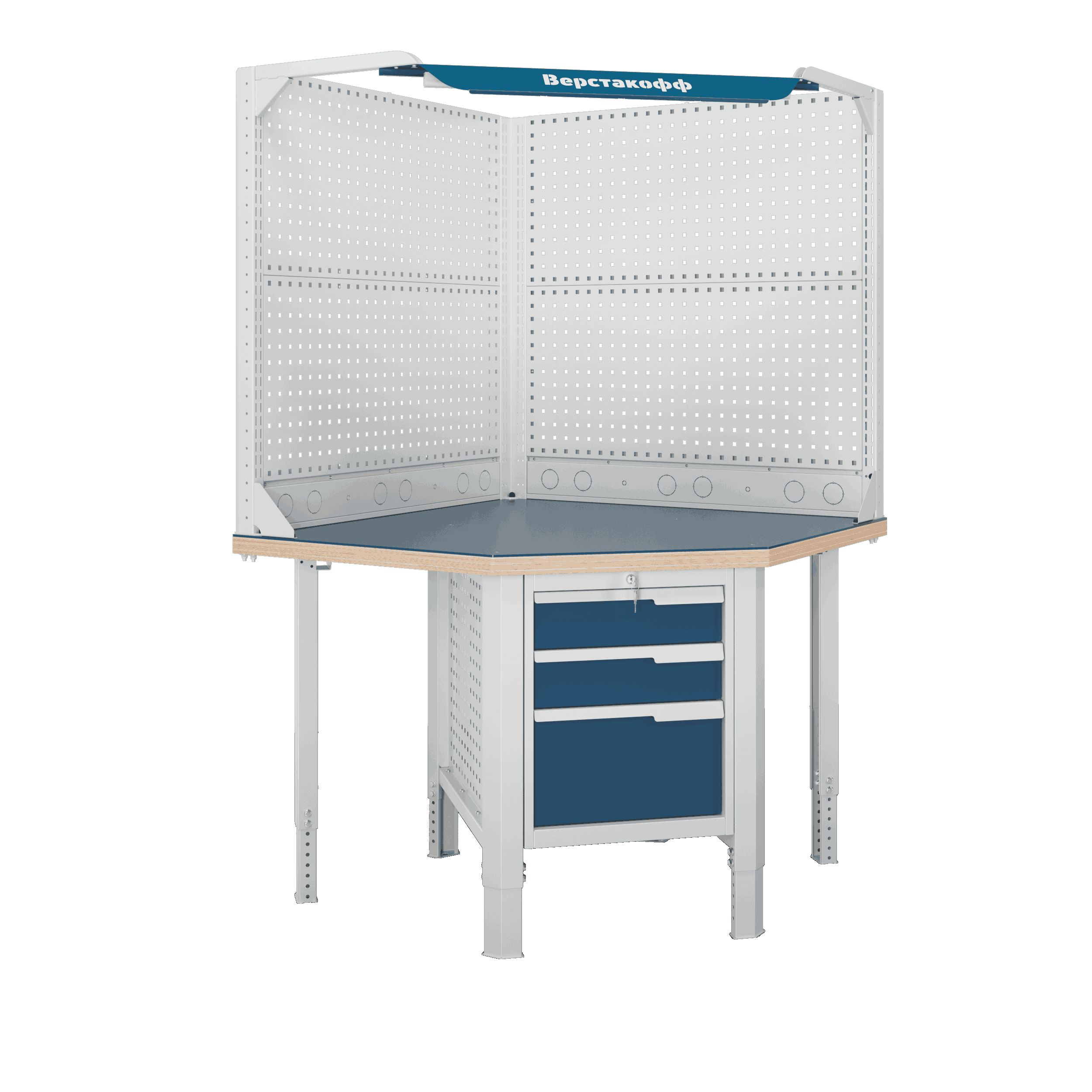 Блок стыковки углового верстака серии Constructor U5 разработан для обеспечения максимальной гибкости и надежности, учитывая конструктивные характеристики рабочего помещения.