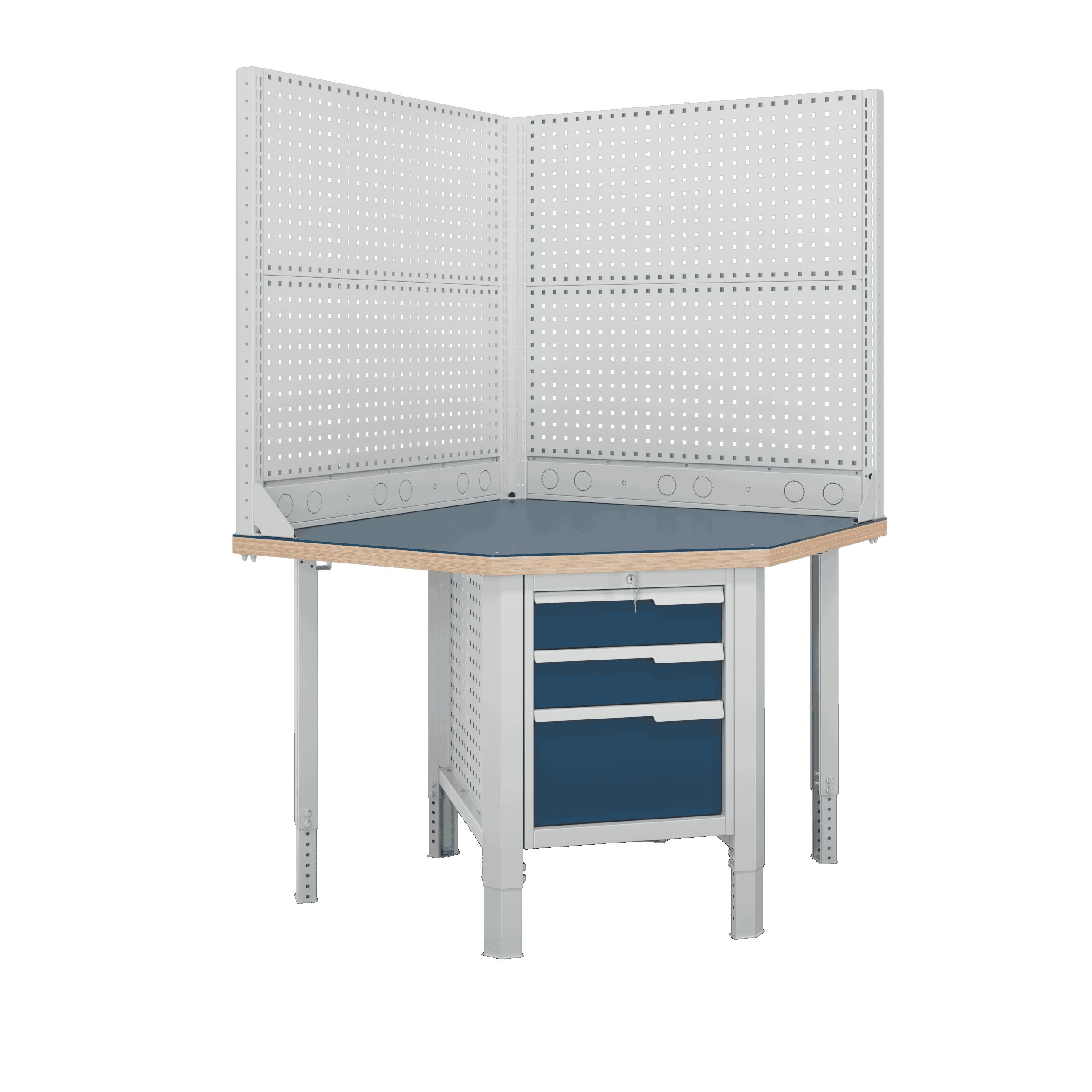 Блок стыковки углового верстака серии Constructor U5 разработан для обеспечения максимальной гибкости и надежности, учитывая конструктивные характеристики рабочего помещения.