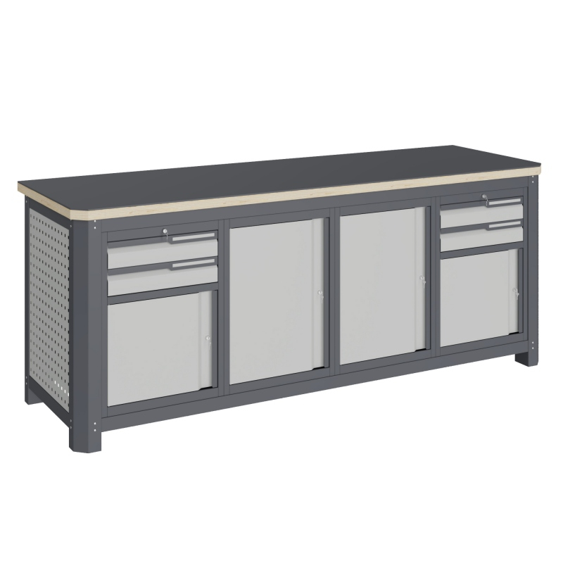 Модуль верстака выполнен сварными. Ящики в модулях устанавливаются на шариковых телескопических направляющих полного выдвижения.
