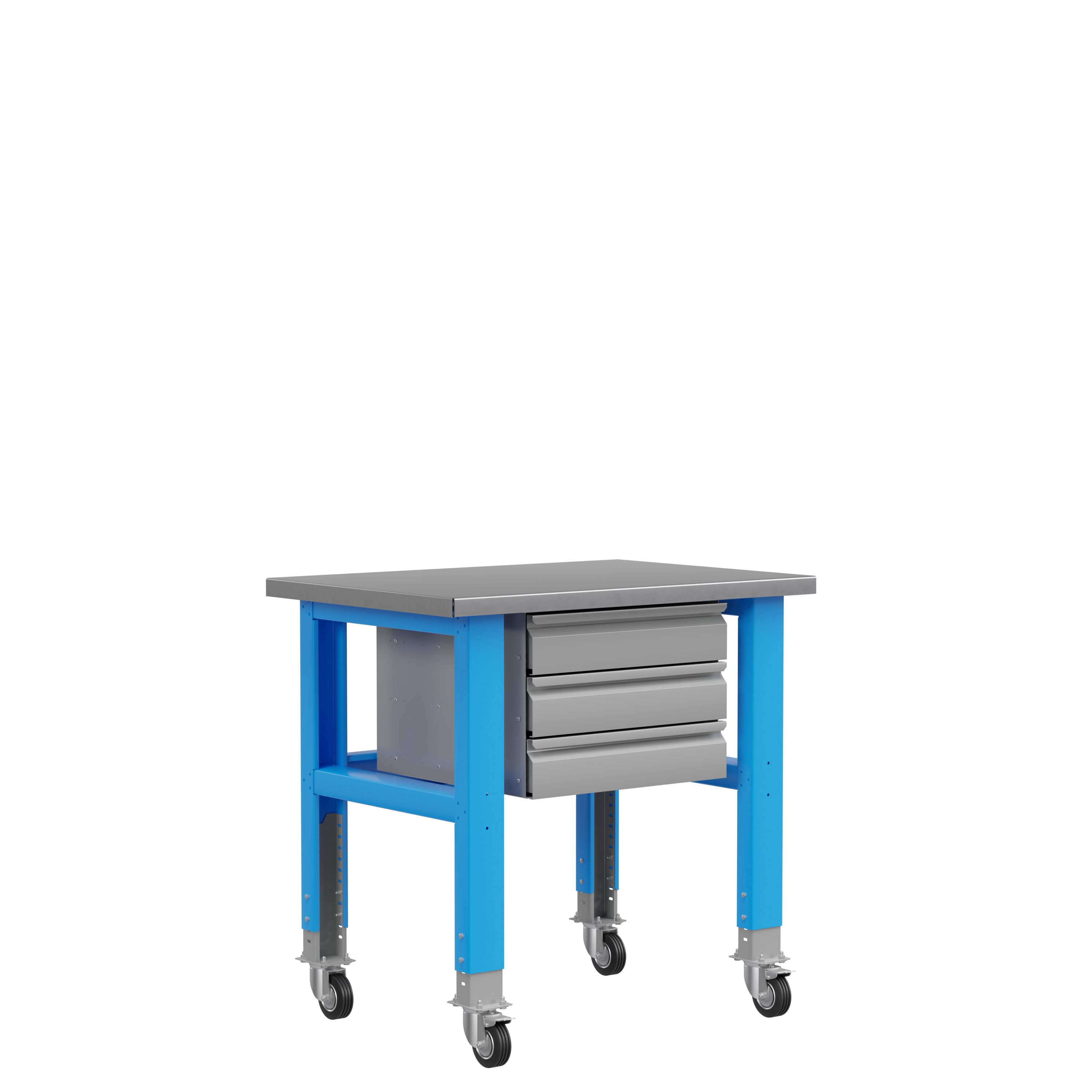 Дополнительно, изделия могут комплектоваться колесными опорами, перфорированными панелями, полками и держателями для инструментов.Конструкция опор позволяет производить регулировку по высоте от 800 до 1000 мм, что позволяет использовать подкатные инструментальные тележки «Верстакофф ®» серии 795.