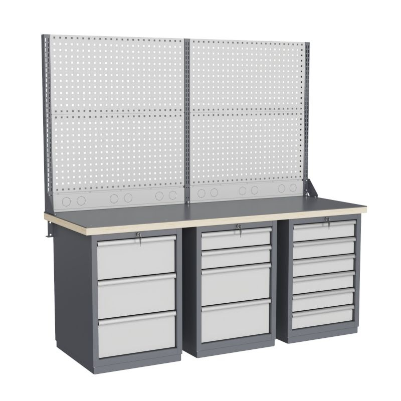 - широкий выбор различных тумб позволяет получить более 50 различных вариантов верстаков и рабочих столов под любые задачи;
