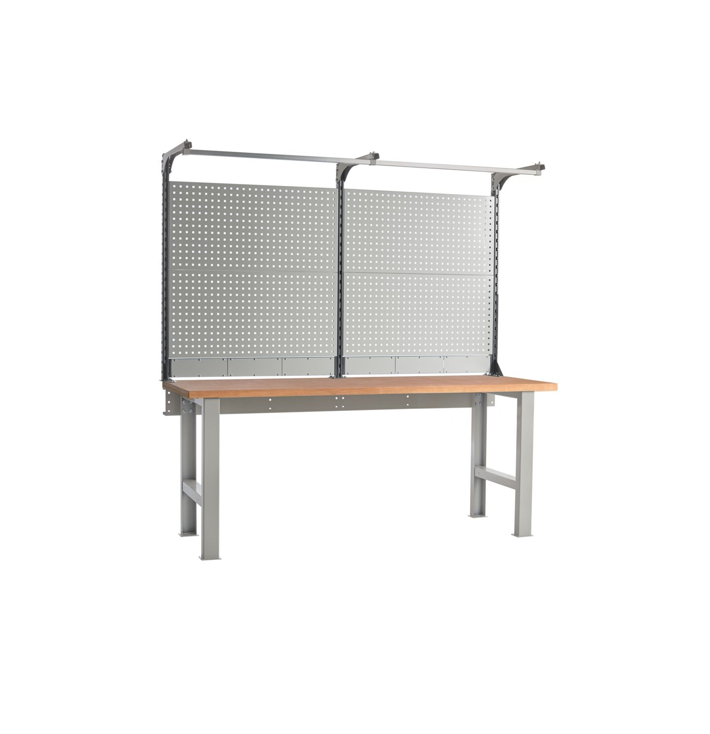 Металлические элементы верстаков окрашены эпоксидной порошковой краской, устойчивой к механическим воздействиям и агрессивным жидкостям. Ящики, дверцы тумб и стойки экрана – цвет антрацитово-серый RAL 7016, остальные элементы – цвет серый RAL 7038.